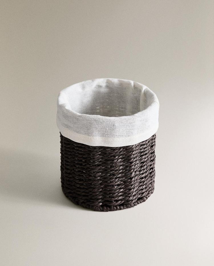 ZARA HOME КРУГЛАЯ КОРЗИНА С ПОДКЛАДКОЙ ИЗО ЛЬНА, КОРИЧНЕВЫЙ
