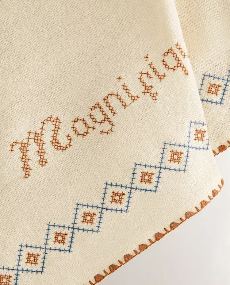 ZARA HOME КУХОННОЕ ПОЛОТЕНЦЕ ИЗ ХЛОПКА С ВЫШИВКОЙ, КОРИЧНЕВЫЙ
