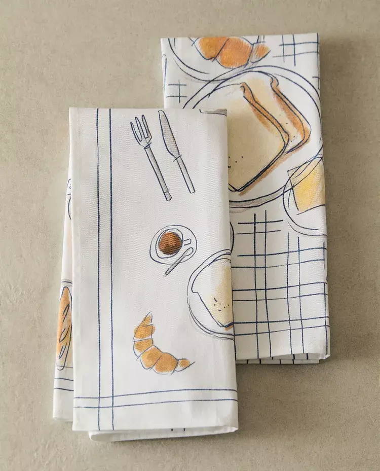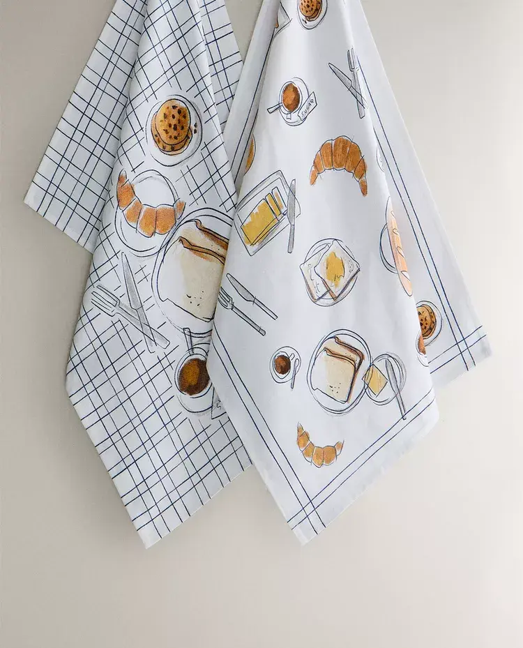 ZARA HOME КУХОННОЕ ПОЛОТЕНЦЕ С ПРИНТОМ (НАБОР ИЗ 2 ШТ.), БЕЛЫЙ