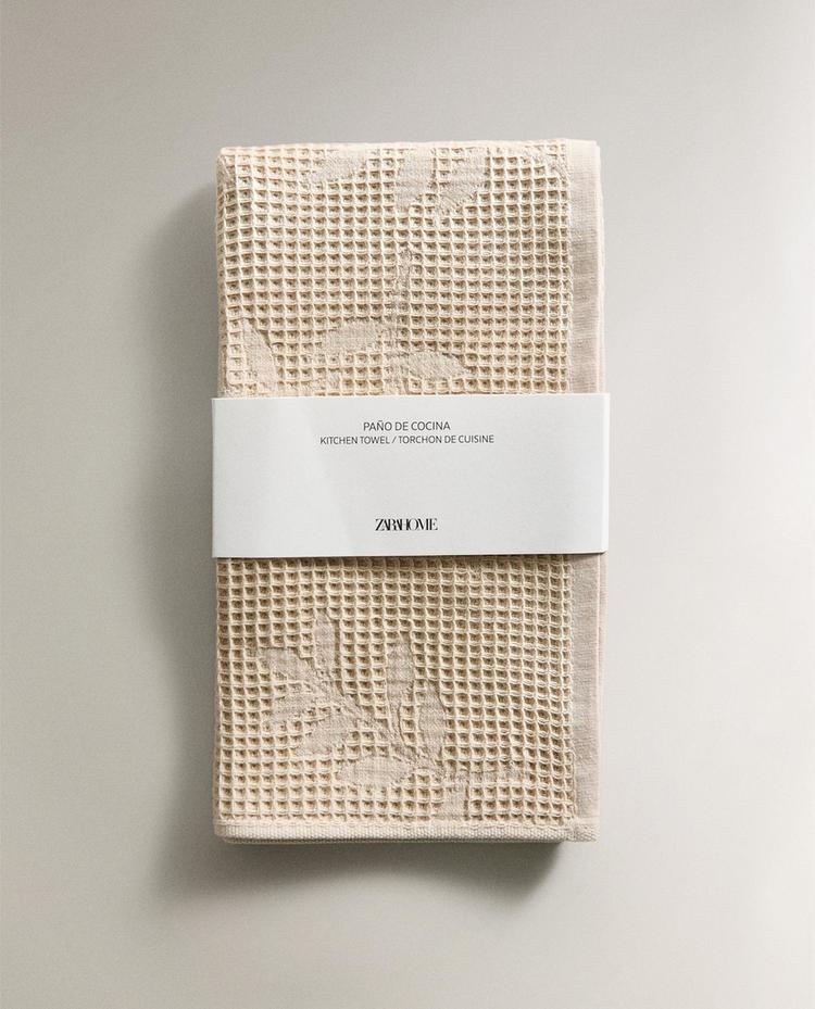 ZARA HOME КУХОННОЕ ПОЛОТЕНЦЕ С ВАФЕЛЬНЫМ УЗОРОМ, СВЕТЛО-БЕЖЕВЫЙ