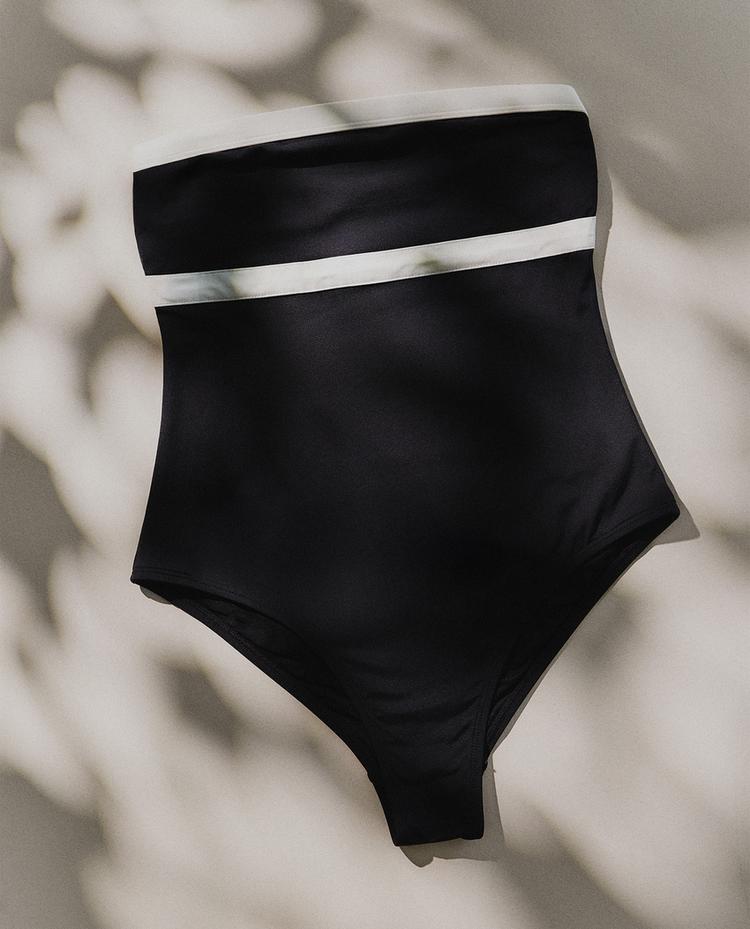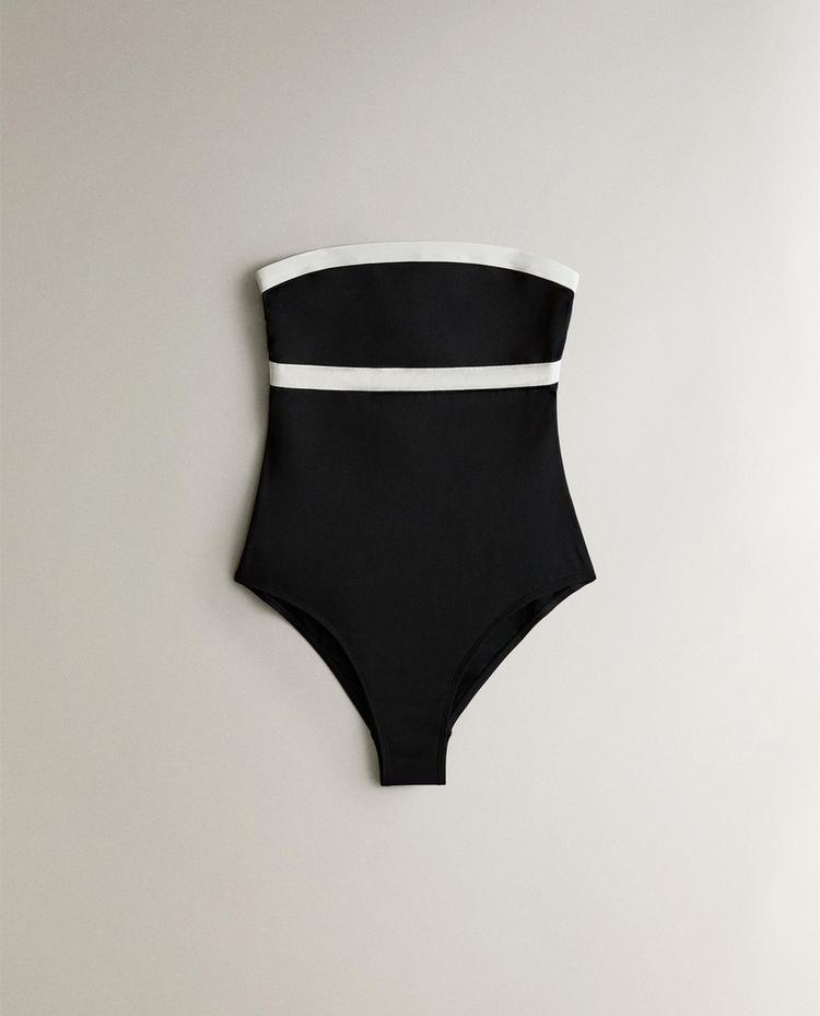 ZARA HOME КУПАЛЬНИК С КОНТРАСТНОЙ ПОЛОСОЙ, ЧЕРНЫЙ