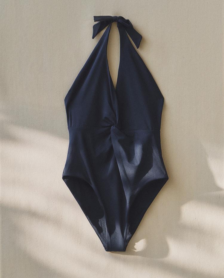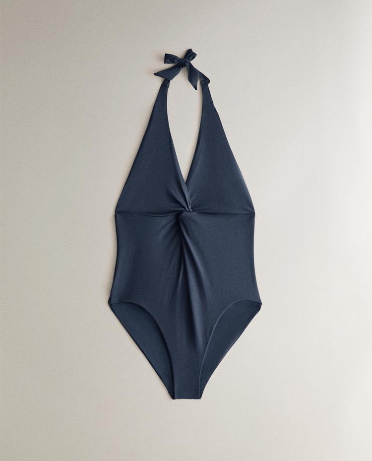 ZARA HOME КУПАЛЬНИК С V-ОБРАЗНЫМ ВЫРЕЗОМ, СИНИЙ