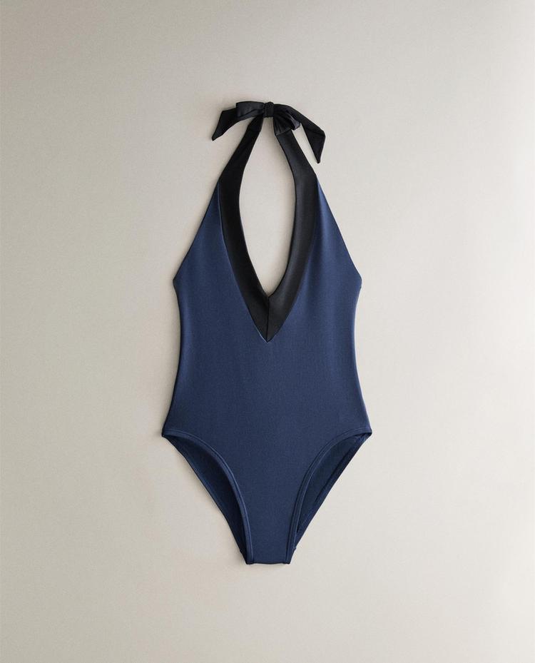 ZARA HOME КУПАЛЬНИК С ЗАВЯЗКАМИ НА ШЕЕ, СИНИЙ