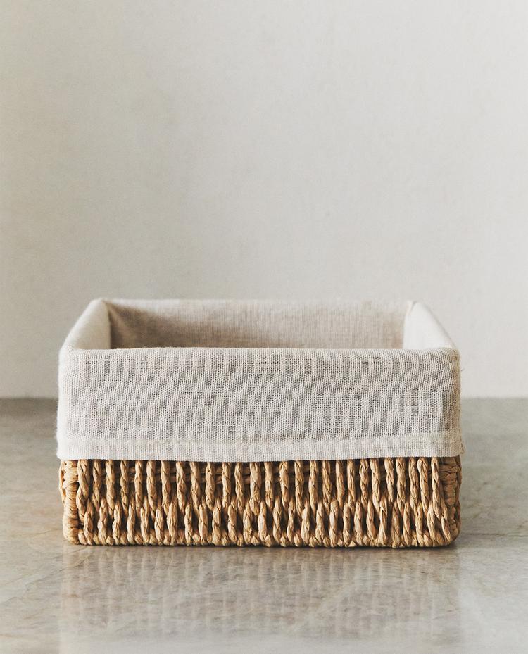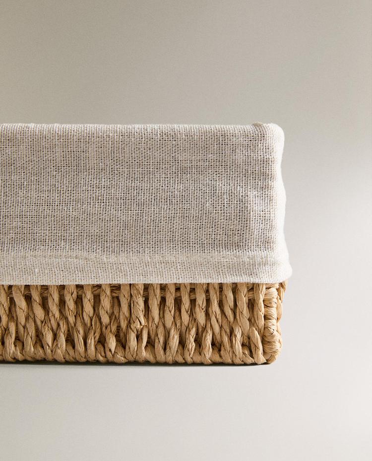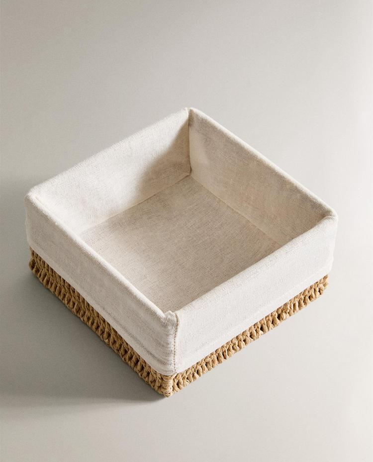 ZARA HOME КВАДРАТНАЯ КОРЗИНА С ТЕКСТИЛЬНОЙ ПОДКЛАДКОЙ, СВЕТЛО-БЕЖЕВЫЙ