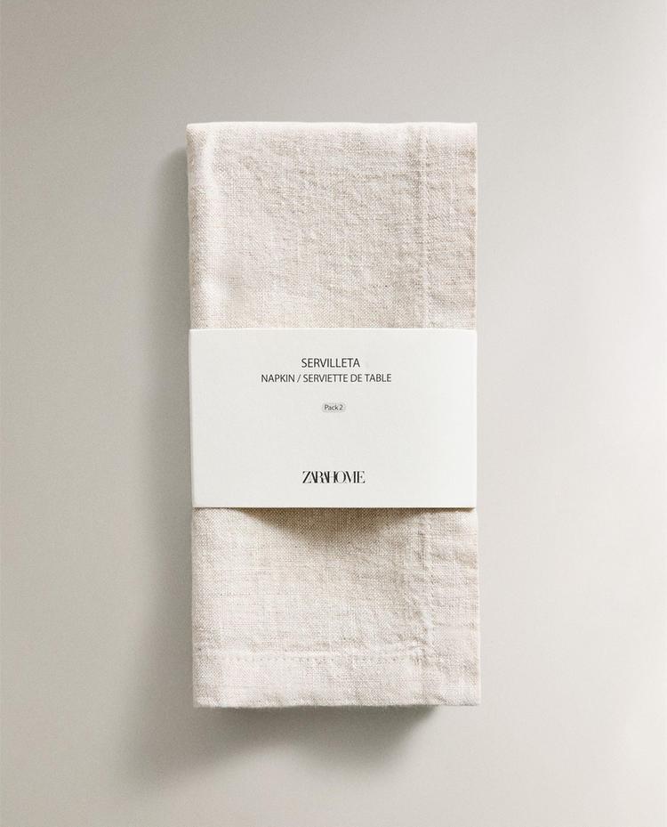 ZARA HOME ЛЬНЯНЫЕ САЛФЕТКИ (НАБОР ИЗ 2 ШТ.), СВЕТЛО-БЕЖЕВЫЙ