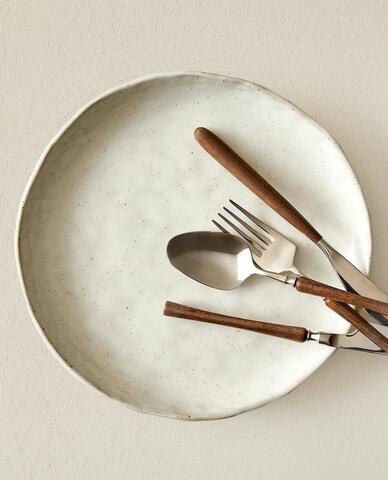 ZARA HOME МАЛЕНЬКОЕ КРУГЛОЕ СЕРВИРОВОЧНОЕ БЛЮДО С РЕЛЬЕФНОЙ ПОВЕРХНОСТЬЮ, ЖЕЛТОВАТО-БЕЛЫЙ