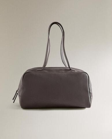 Миниатюрная кожаная сумка-тоут через плечо. Двойной плечевой ремень. Внутренний карман. Застежка на молнию.