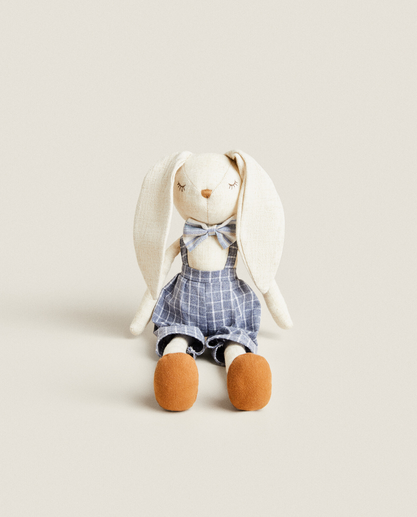 ZARA HOME МЯГКАЯ ИГРУШКА КРОЛИК В КЛЕТЧАТОМ КОМБИНЕЗОНЕ