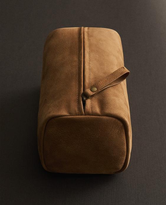 ZARA HOME МЯГКАЯ КОЖАНАЯ КОСМЕТИЧКА, ЖЕЛТО-КОРИЧНЕВЫЙ