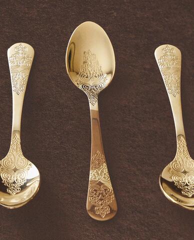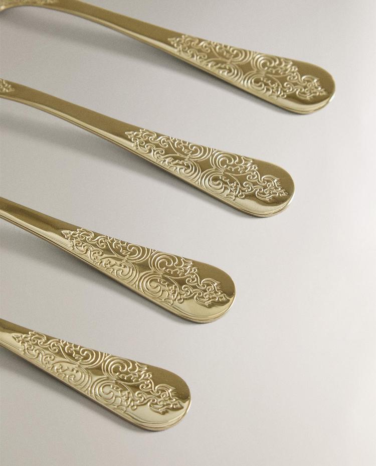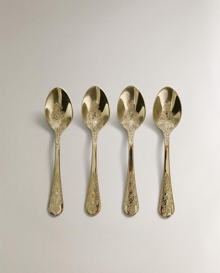 ZARA HOME НАБОР ДЕСЕРТНЫХ ЛОЖЕК С ГРАВИРОВКОЙ (4 ШТ.), ЗОЛОТИСТЫЙ