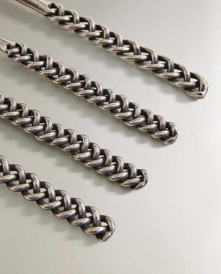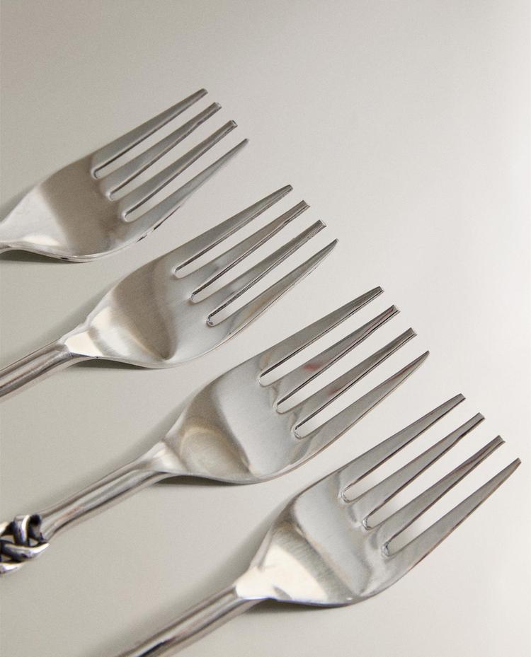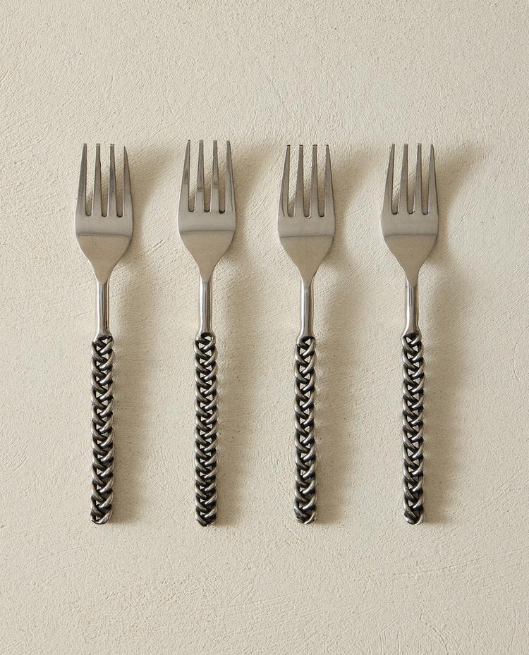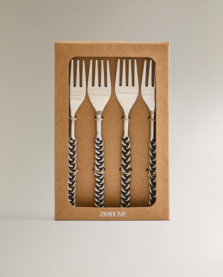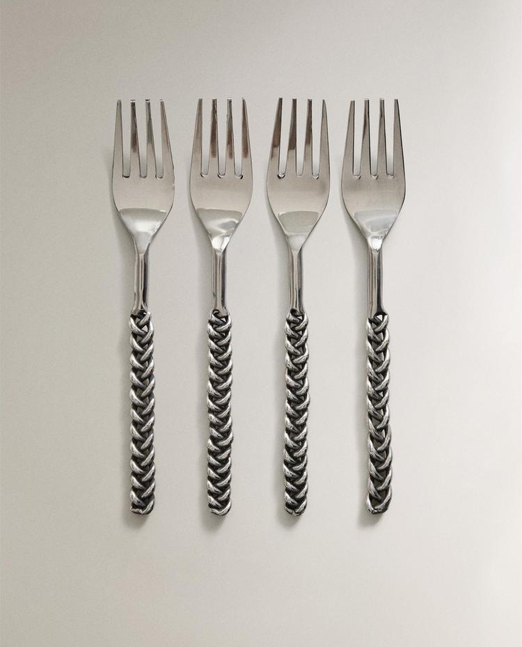 ZARA HOME НАБОР ДЕСЕРТНЫХ ВИЛОК С ПЛЕТЕНЫМИ РУЧКАМИ (4 ШТ.), СТАЛЬНОЙ СЕРЫЙ