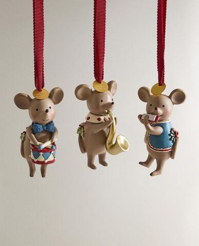 ZARA HOME НАБОР ЕЛОЧНЫХ УКРАШЕНИЙ «МУЗЫКАЛЬНЫЕ МЫШИ» (НАБОР ИЗ 3 ШТУК), РАЗНОЦВЕТНЫЙ