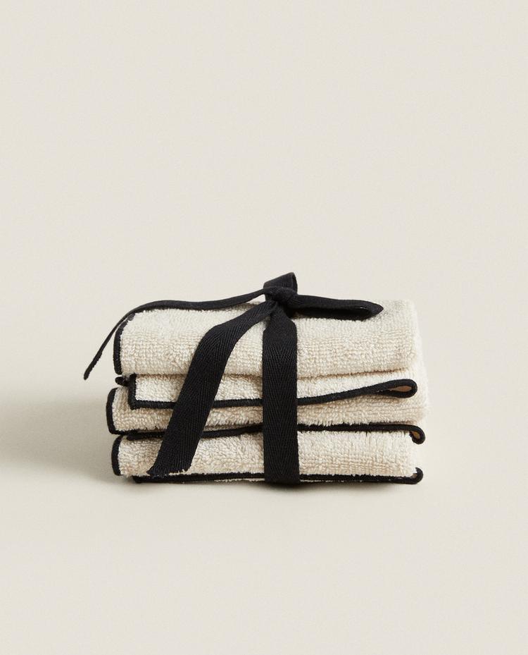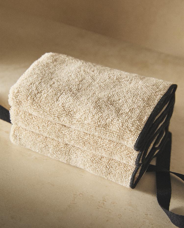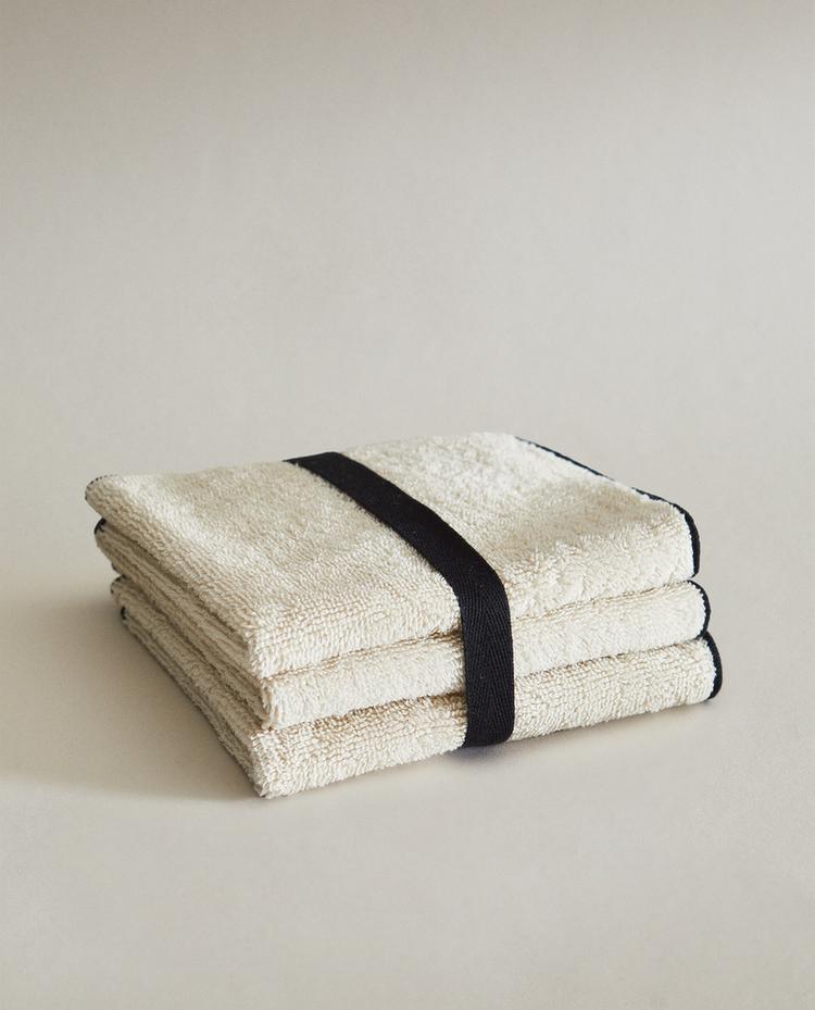 ZARA HOME НАБОР ХЛОПКОВЫХ ПОЛОТЕНЕЦ (3 ШТ.), ПЕСОЧНЫЙ/ЭКРЮ