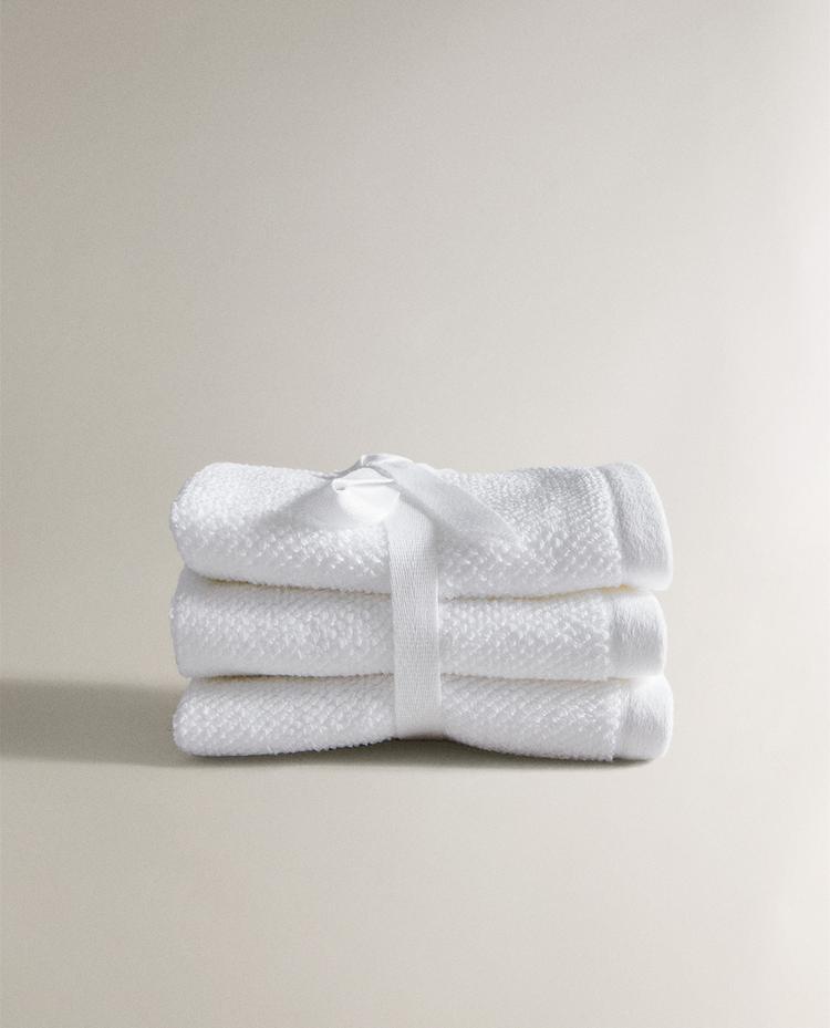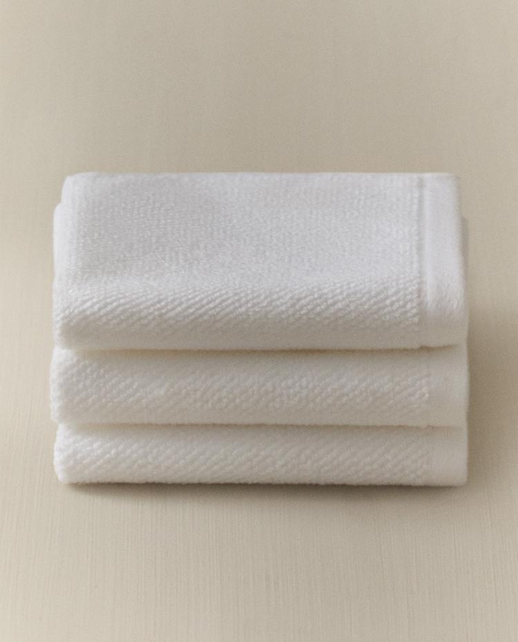 ZARA HOME НАБОР ХЛОПКОВЫХ ПОЛОТЕНЕЦ ДЛЯ РУК (3 ШТ.), БЕЛЫЙ