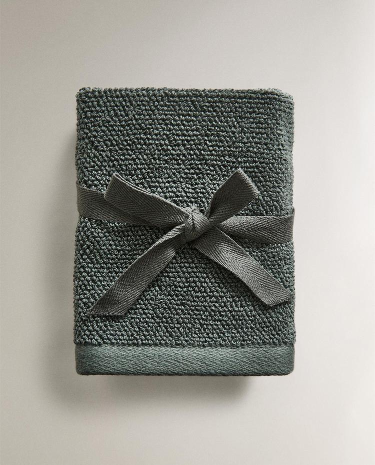 ZARA HOME НАБОР ХЛОПКОВЫХ ПОЛОТЕНЕЦ ДЛЯ РУК (3 ШТ.), ЗЕЛЕНЫЙ