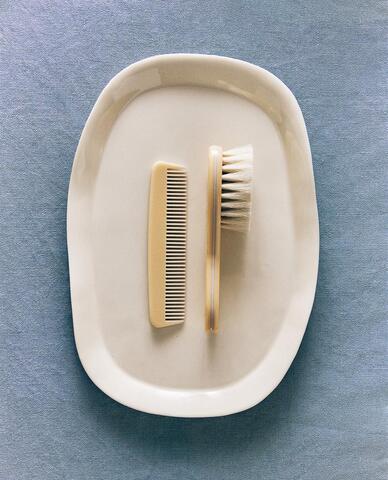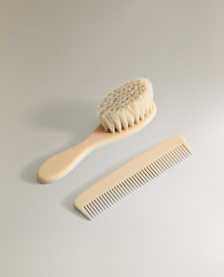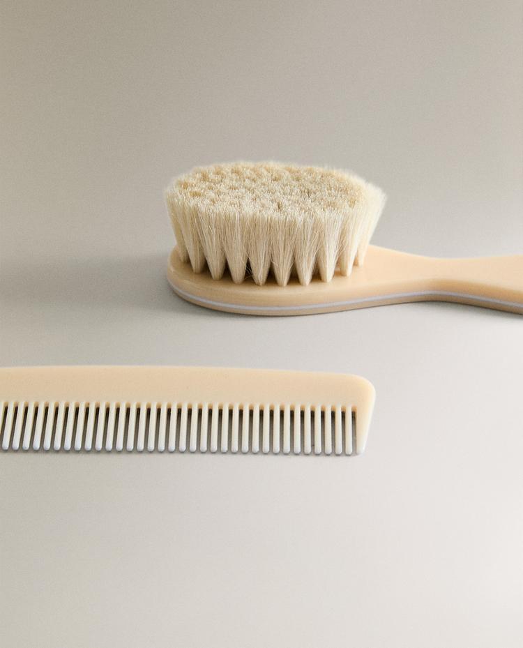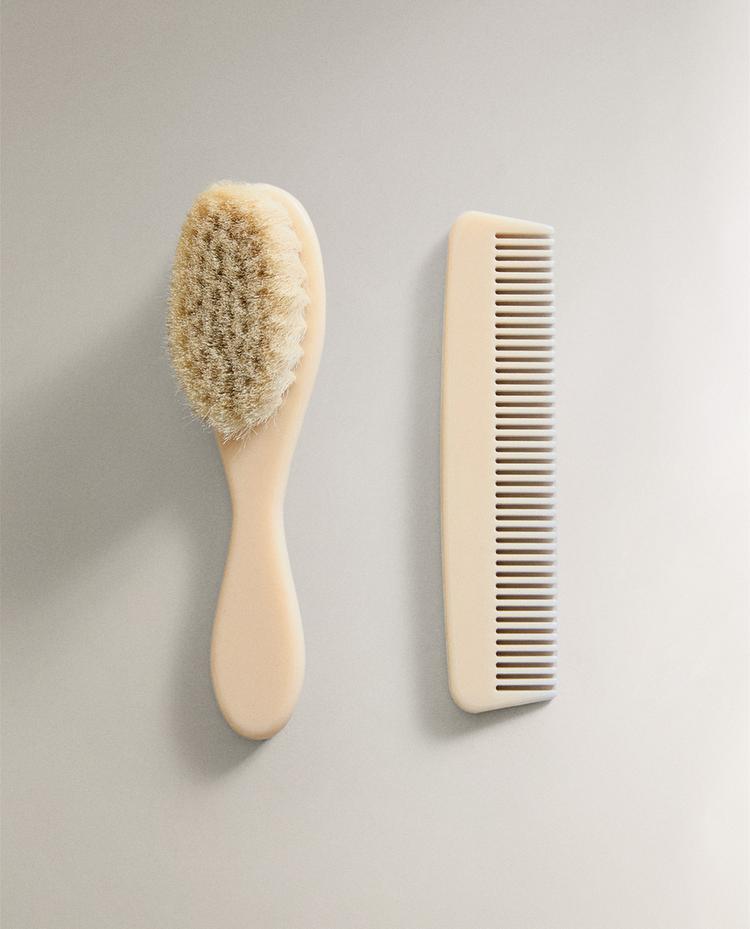 ZARA HOME НАБОР ИЗ ДЕТСКОЙ ЩЕТКИ И РАСЧЕСКИ, КРЕМОВЫЙ