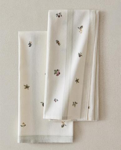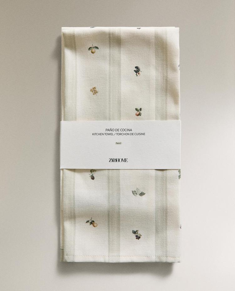 ZARA HOME НАБОР КУХОННЫХ ПОЛОТЕНЕЦ С ПРИНТОМ (НАБОР ИЗ 2 ШТ.), ЗЕЛЕНЫЙ