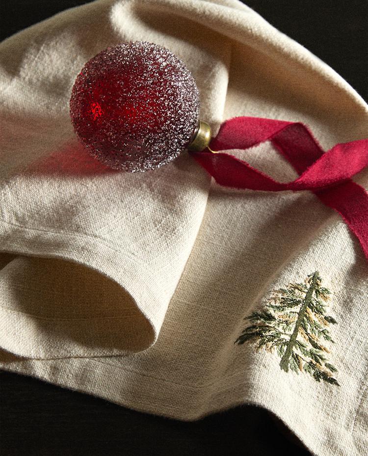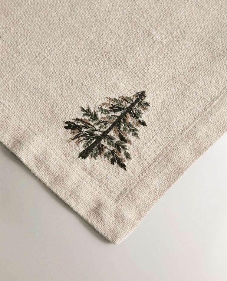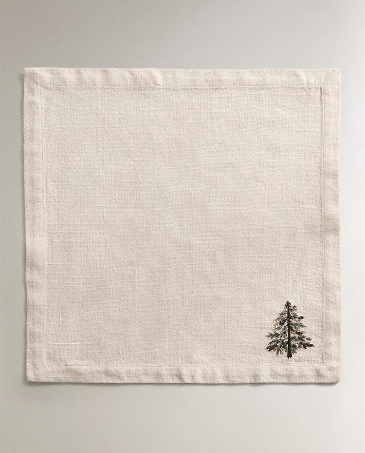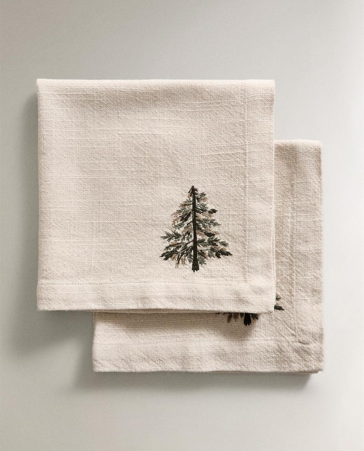 ZARA HOME НАБОР ЛЬНЯНЫХ РОЖДЕСТВЕНСКИХ САЛФЕТОК С ВЫШИВКОЙ (2 ШТ.), ЭКРЮ