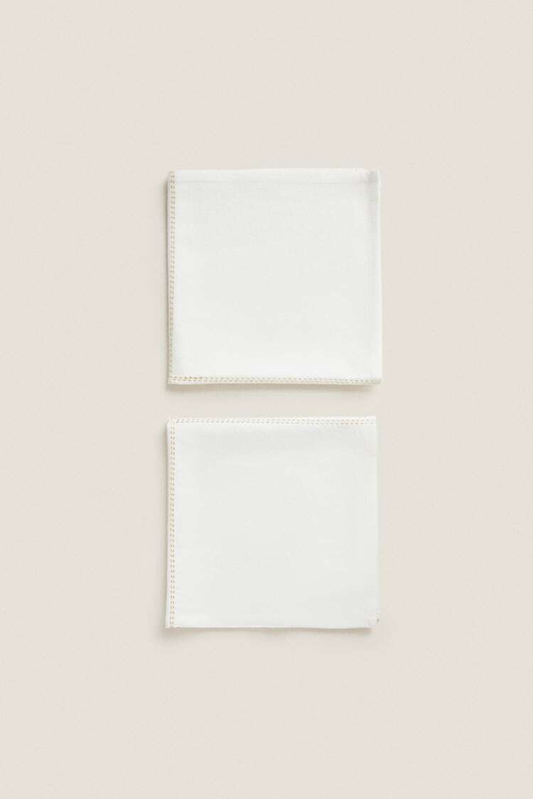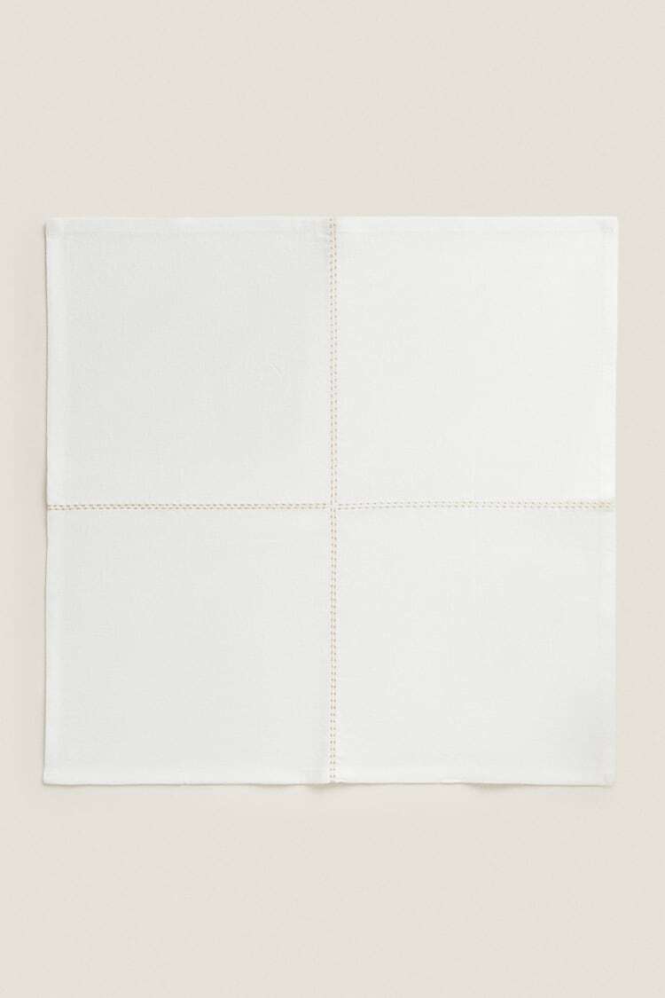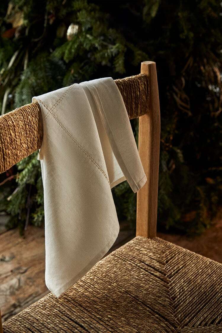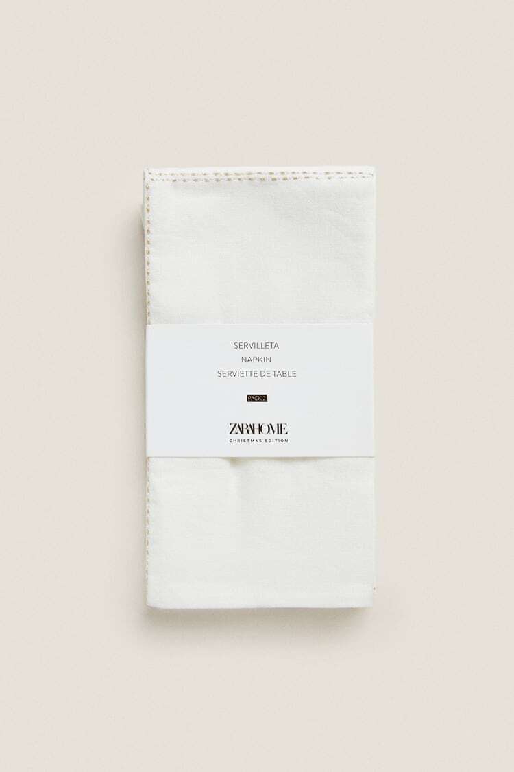 ZARA HOME НАБОР ЛЬНЯНЫХ САЛФЕТОК С ЦЕПОЧКОЙ НА РОЖДЕСТВЕНСКУЮ ТЕМАТИКУ (НАБОР ИЗ 2 ПРЕДМЕТОВ), БЕЛЫЙ