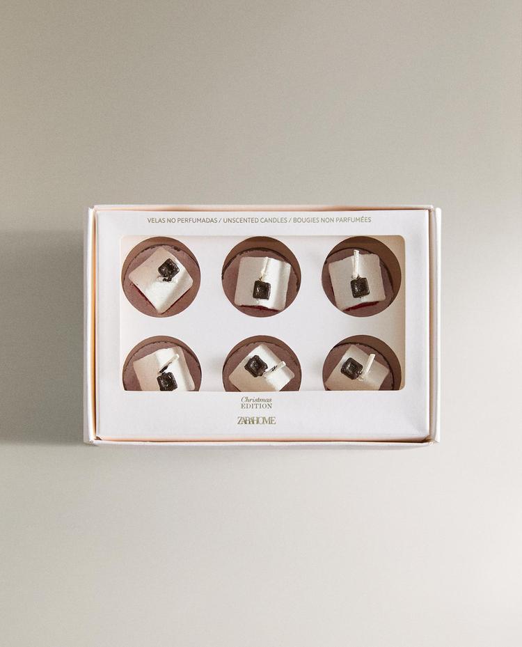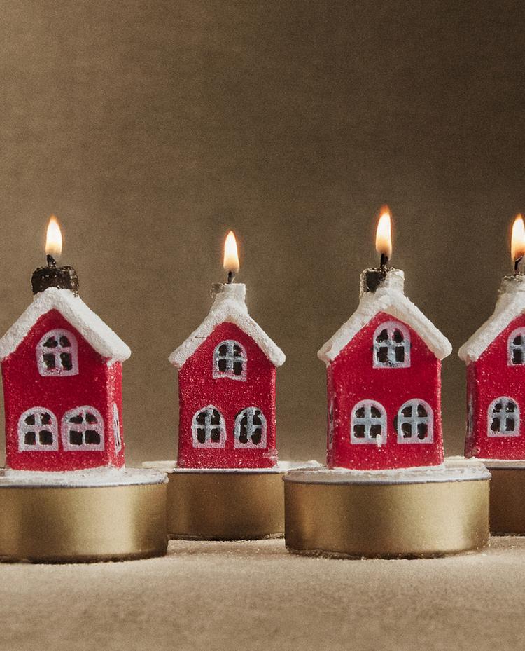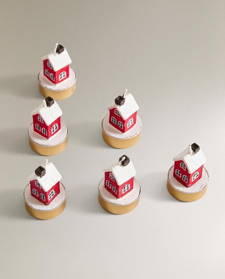 ZARA HOME НАБОР МАЛЕНЬКИХ НОВОГОДНИХ СВЕЧЕЙ «ДОМИК» (6 ШТ.), КРАСНЫЙ