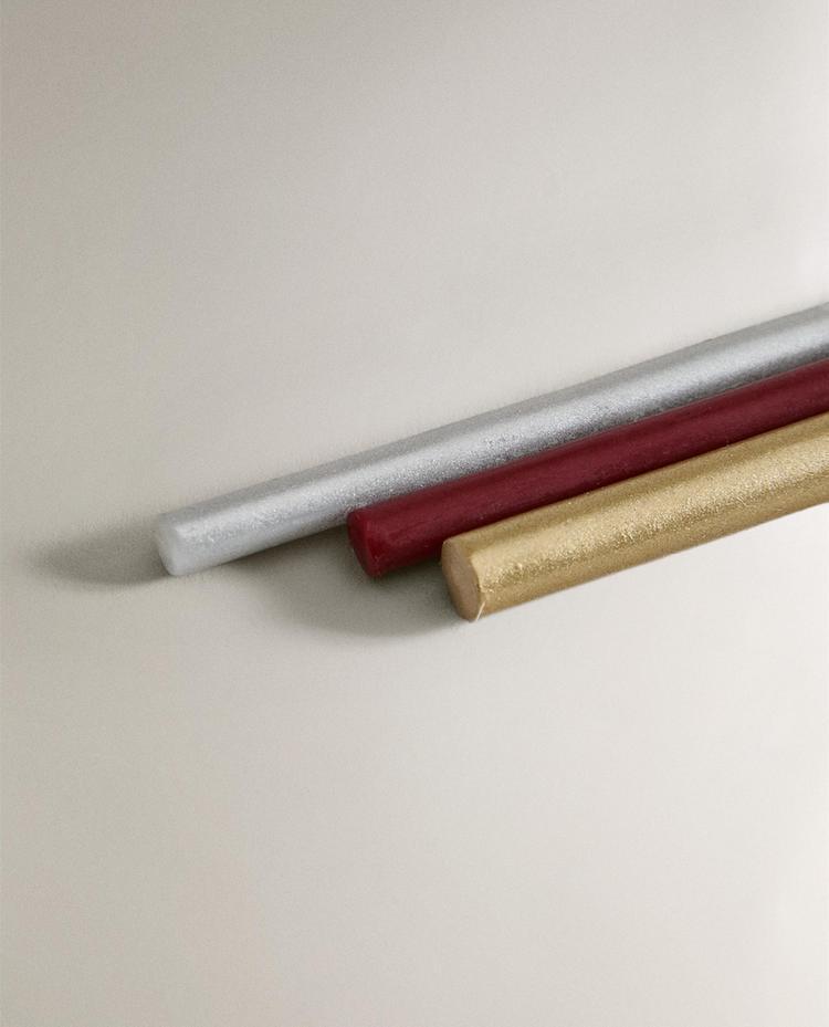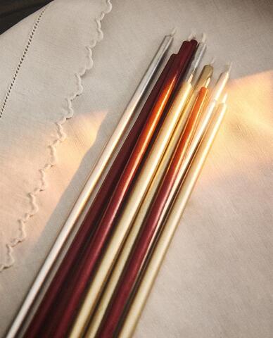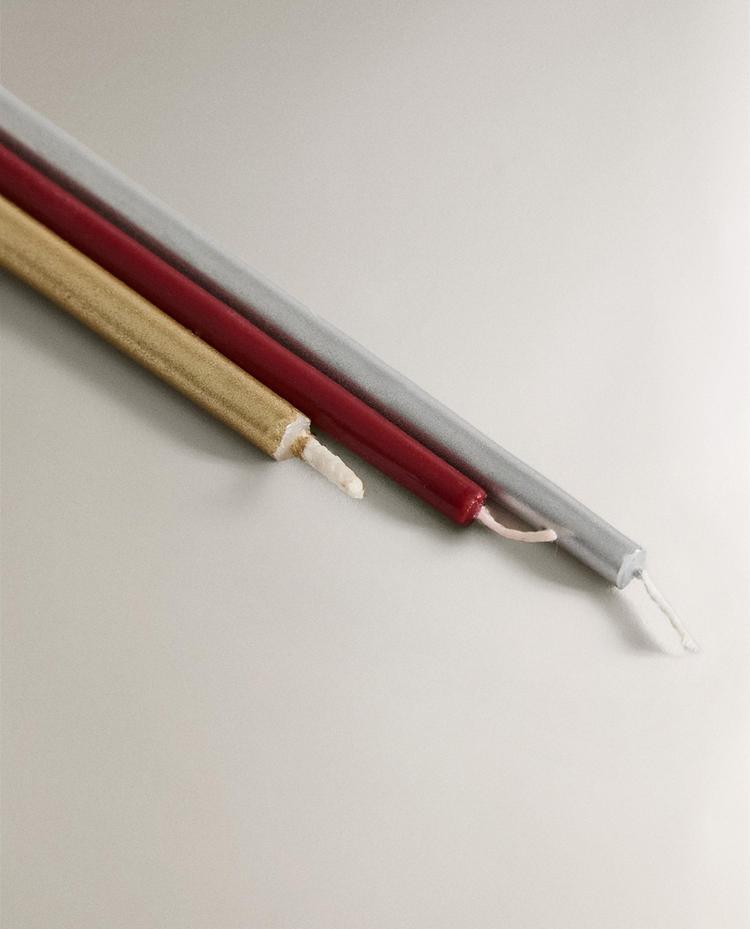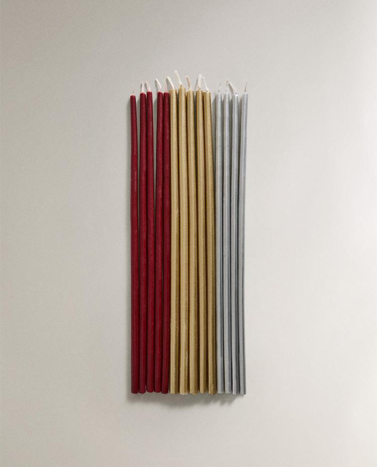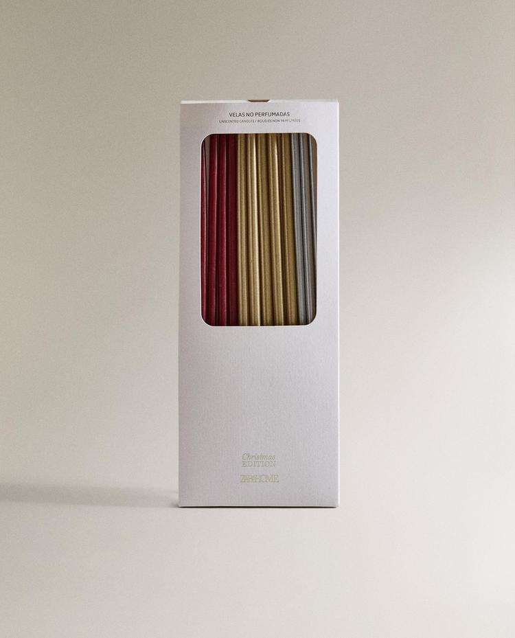 ZARA HOME НАБОР РАЗНОЦВЕТНЫХ РОЖДЕСТВЕНСКИХ ДЛИННЫХ СВЕЧЕЙ (НАБОР ИЗ 15 ШТУК), ЗОЛОТОЙ/СЕРЕБРЯНЫЙ