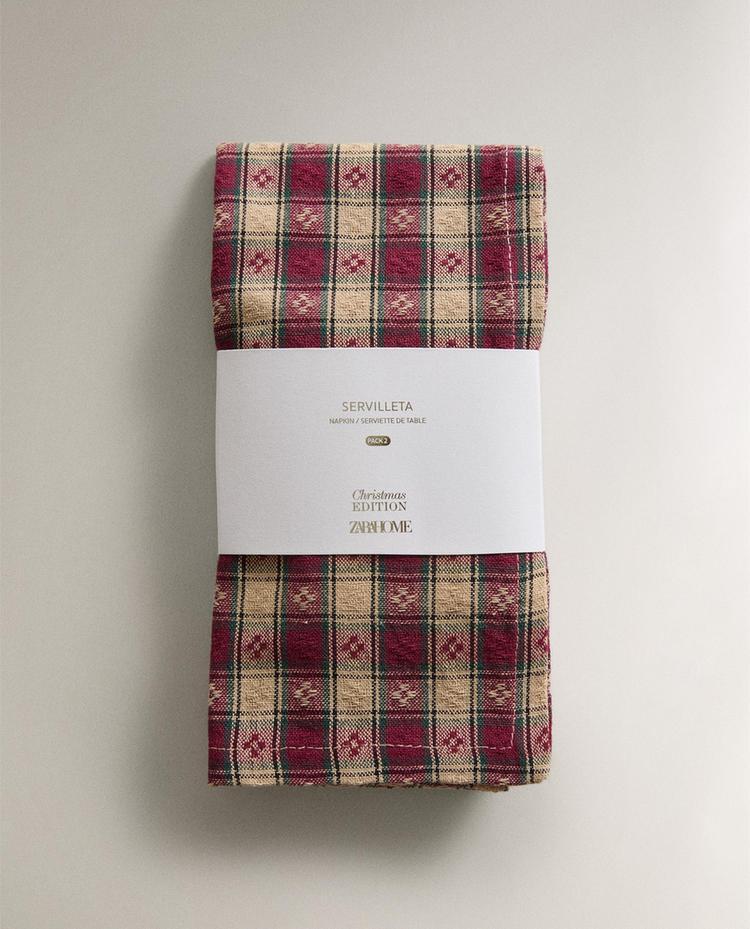 ZARA HOME НАБОР РОЖДЕСТВЕНСКИХ САЛФЕТОК В КЛЕТКУ (2 ШТ.), ТЕМНО-КРАСНЫЙ