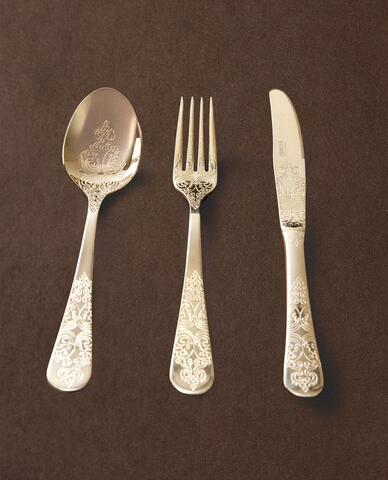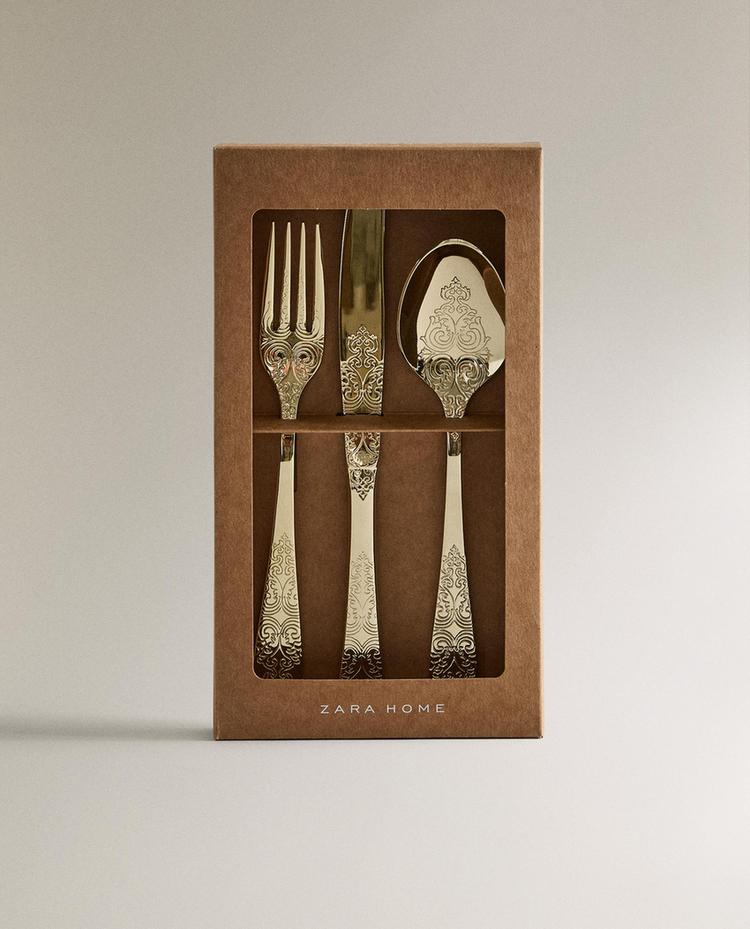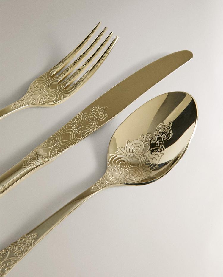 ZARA HOME НАБОР СТОЛОВЫХ ПРИБОРОВ С ГРАВИРОВКОЙ, ЗОЛОТИСТЫЙ