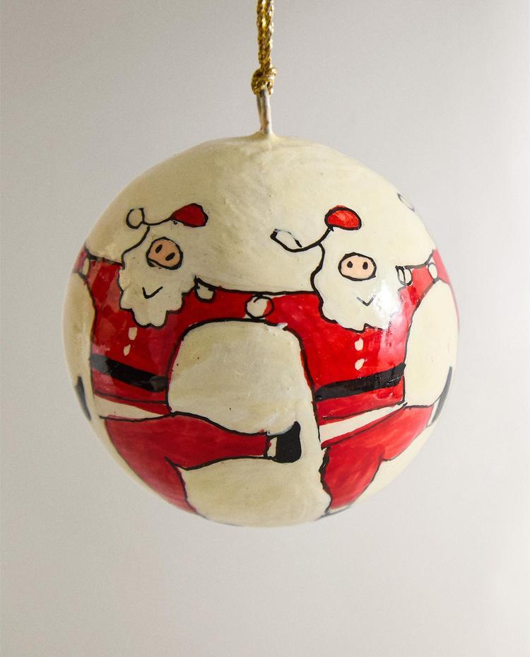 Бумажное ёлочное украшение в форме ёлочного шара с изображением Санта-Клауса.