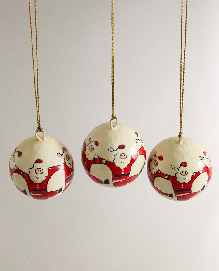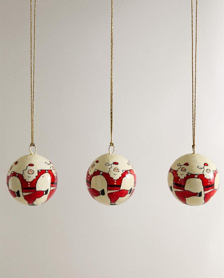 ZARA HOME НАБОР ЁЛОЧНЫХ УКРАШЕНИЙ С САНТА-КЛАУСОМ (НАБОР ИЗ 3 ШТУК), БЕЛЫЙ/КРАСНЫЙ