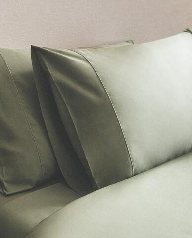 ZARA HOME НАВОЛОЧКА ИЗ ХЛОПКА ПЕРКАЛЬ (300 НИТЕЙ), СВЕТЛО-ЗЕЛЕНЫЙ