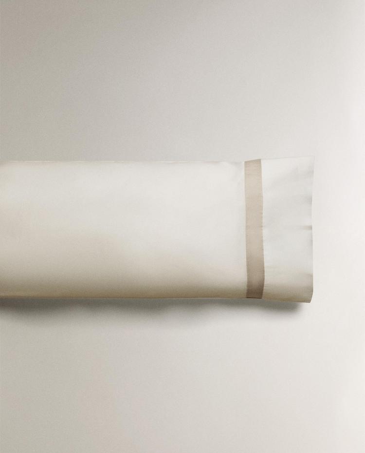 ZARA HOME НАВОЛОЧКА ИЗ САТИНА С КАЙМОЙ (300 НИТЕЙ), СЕРЫЙ