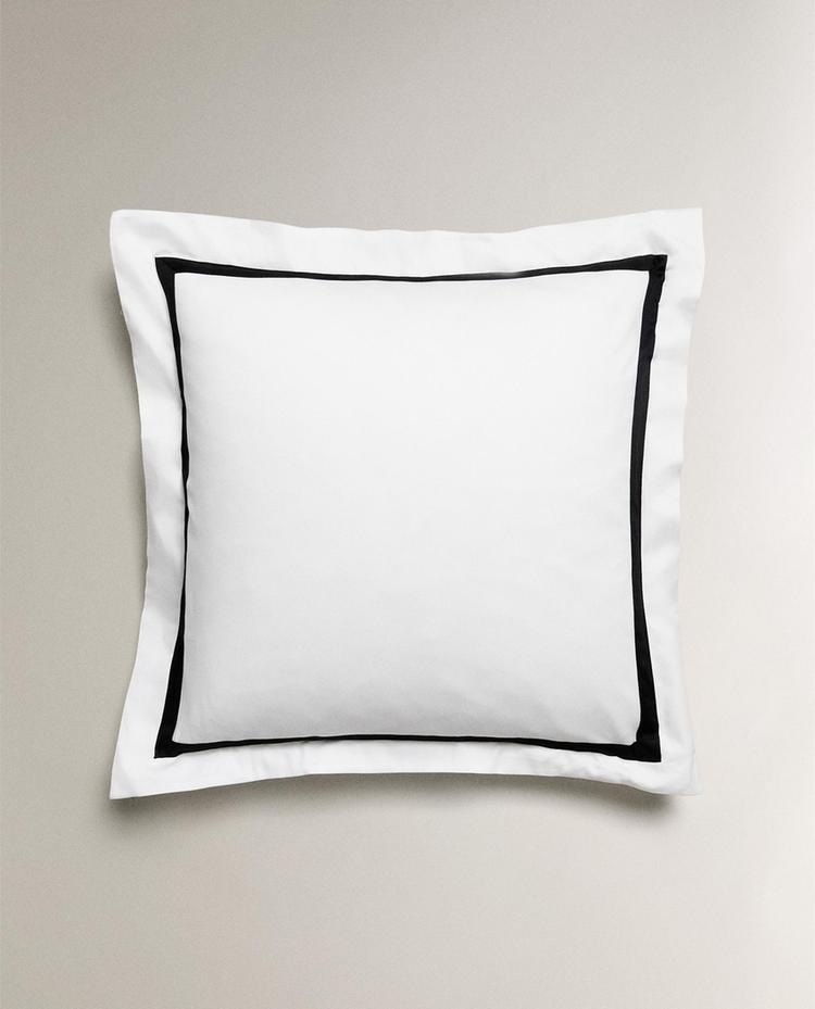 ZARA HOME НАВОЛОЧКА ИЗ САТИНА С КАЙМОЙ, ЧЕРНЫЙ