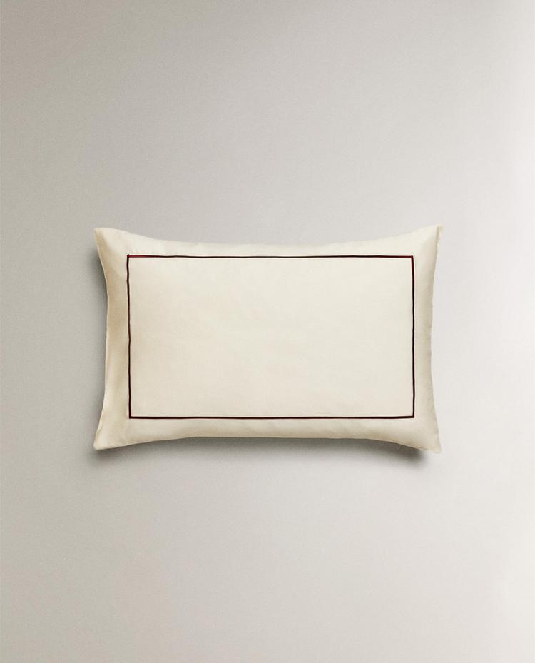 ZARA HOME НАВОЛОЧКА ИЗ САТИНА С ОКАНТОВКОЙ, БУРГУНДИ