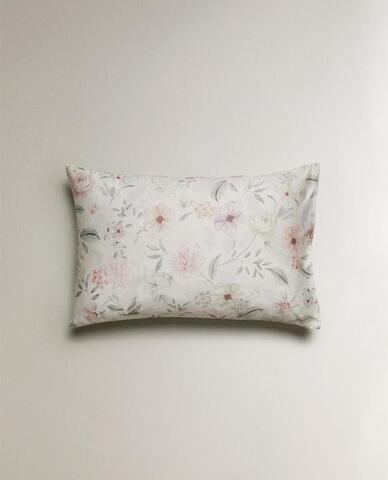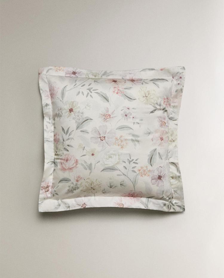 ZARA HOME НАВОЛОЧКА ИЗ САТИНА С ЦВЕТОЧНЫМ ПРИНТОМ, ЖЕЛТОВАТО-БЕЛЫЙ