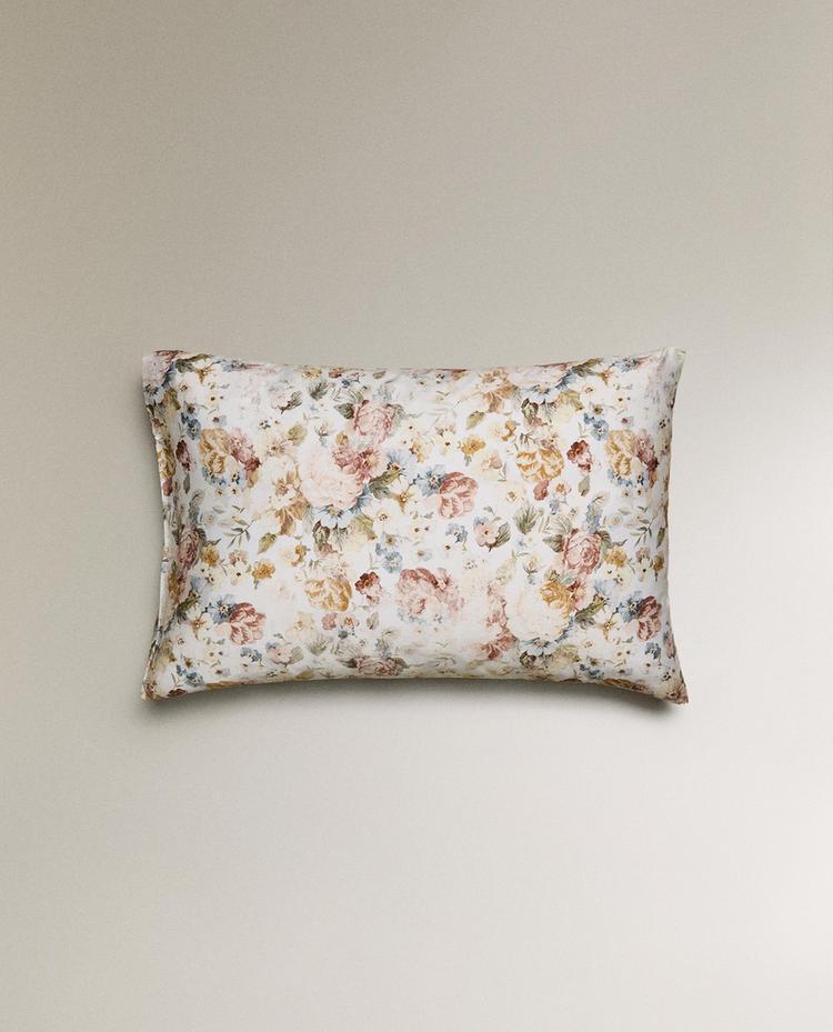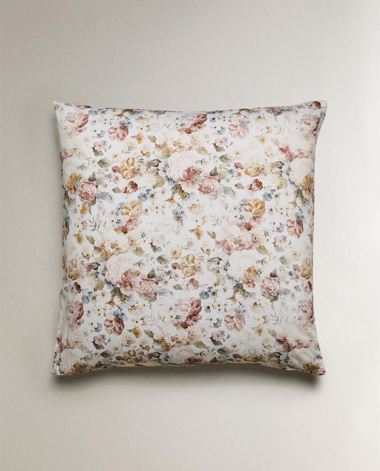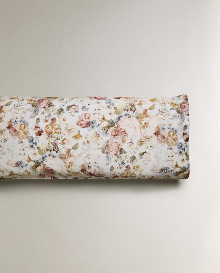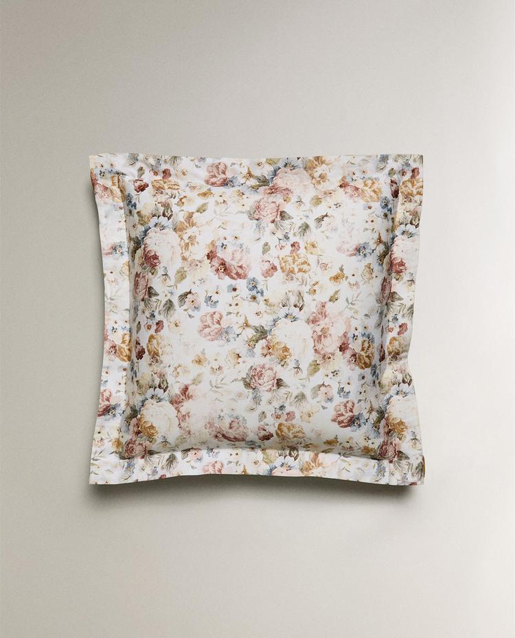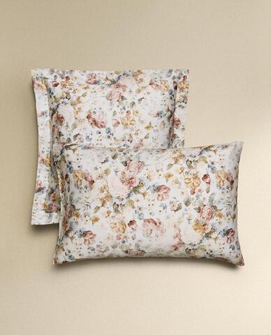 ZARA HOME НАВОЛОЧКА ИЗ САТИНА С ЦВЕТОЧНЫМ ПРИНТОМ, ЖЕЛТОВАТО-БЕЛЫЙ