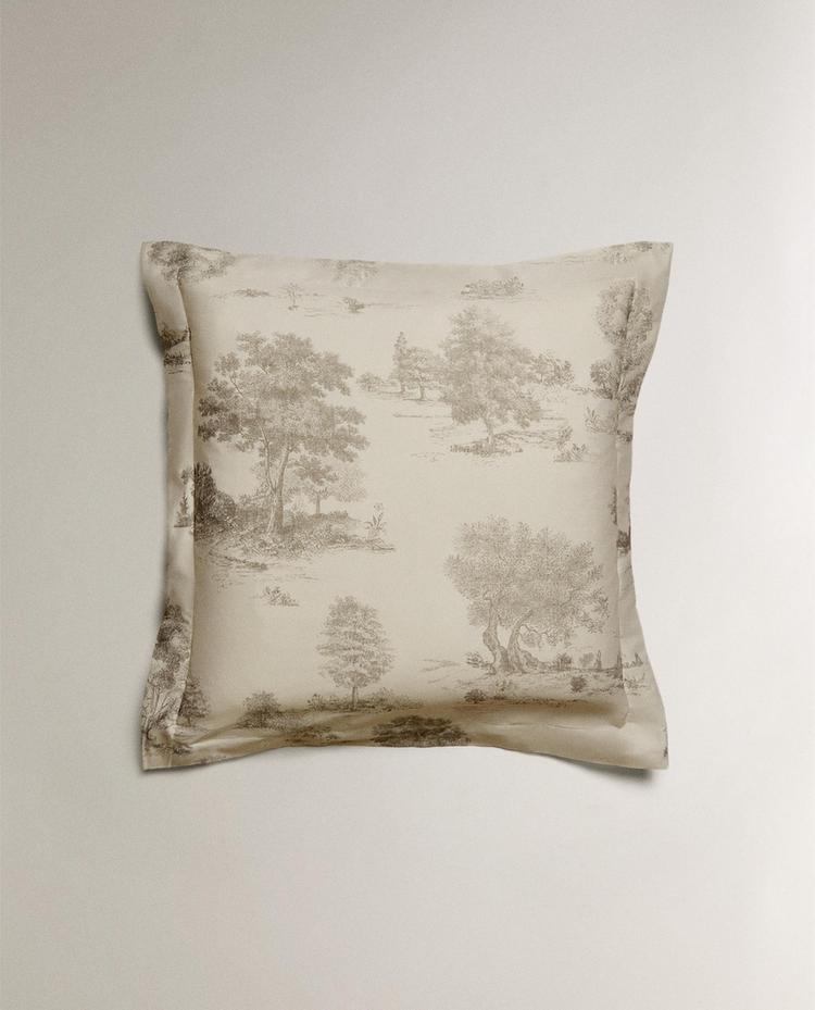 ZARA HOME НАВОЛОЧКА ИЗ САТИНА С УЗОРОМ ТУАЛЬ-ДЕ-ЖУИ, СЕРЫЙ
