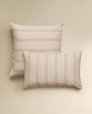 ZARA HOME НАВОЛОЧКА ИЗ СМЕСОВОГО ЛЬНА В КОНТРАСТНУЮ ПОЛОСКУ, СВЕТЛО-БЕЖЕВЫЙ