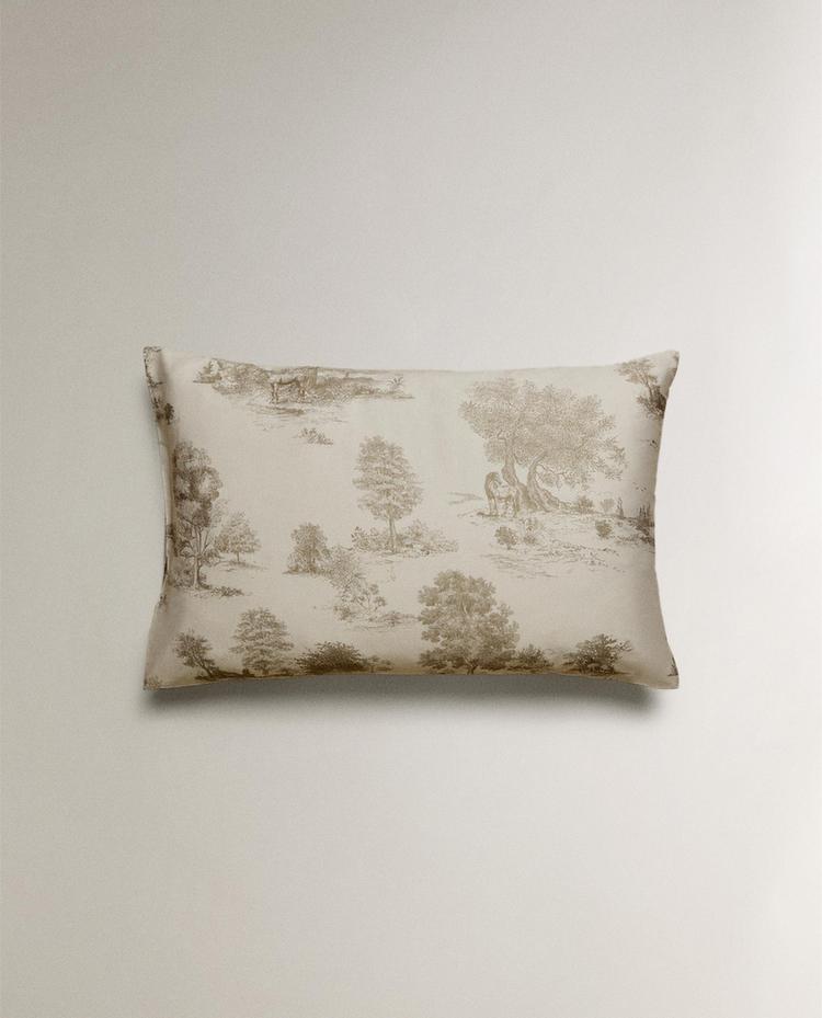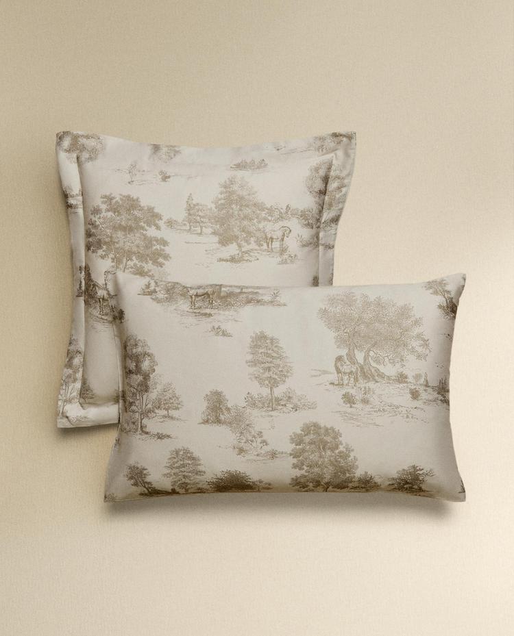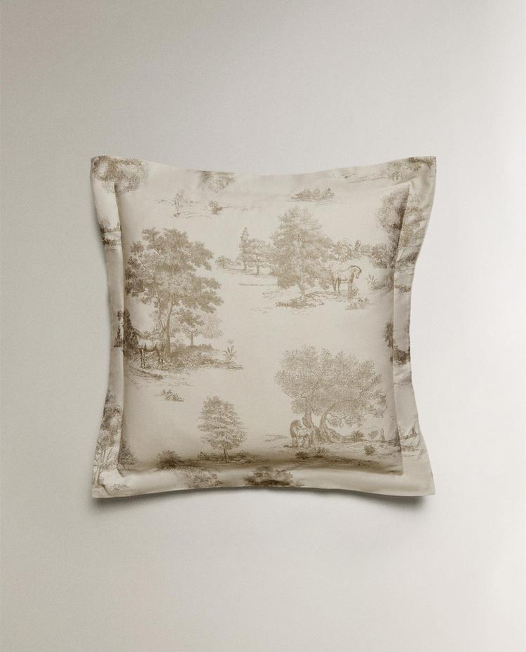 ZARA HOME НАВОЛОЧКА С ПРИНТОМ, СЕРЫЙ/БЕЖЕВЫЙ