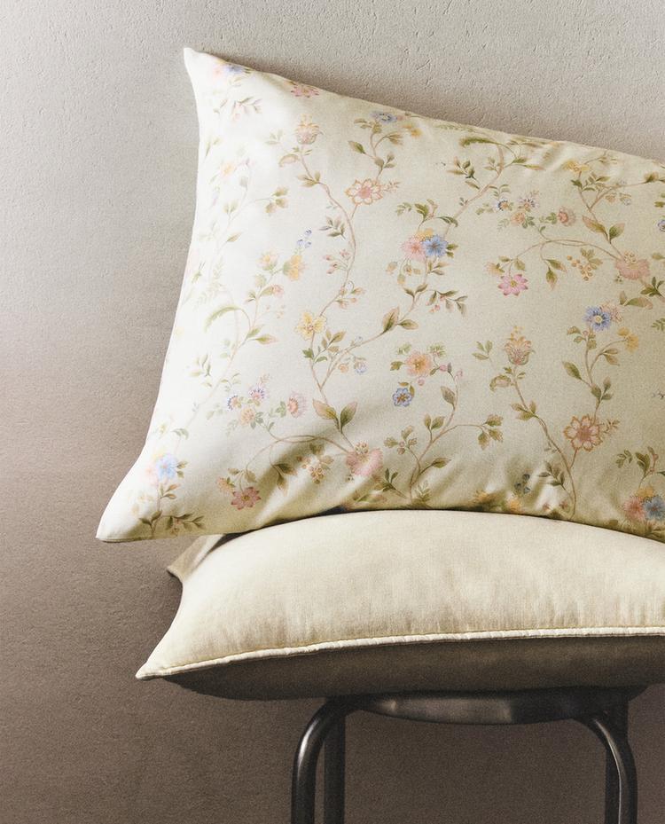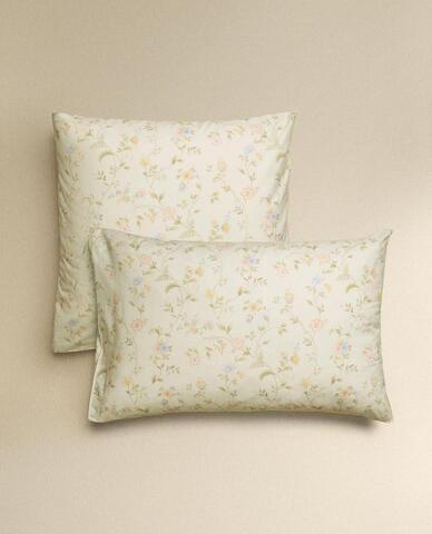 ZARA HOME НАВОЛОЧКА С ЦВЕТОЧНЫМ ПРИНТОМ, ЗЕЛЕНЫЙ