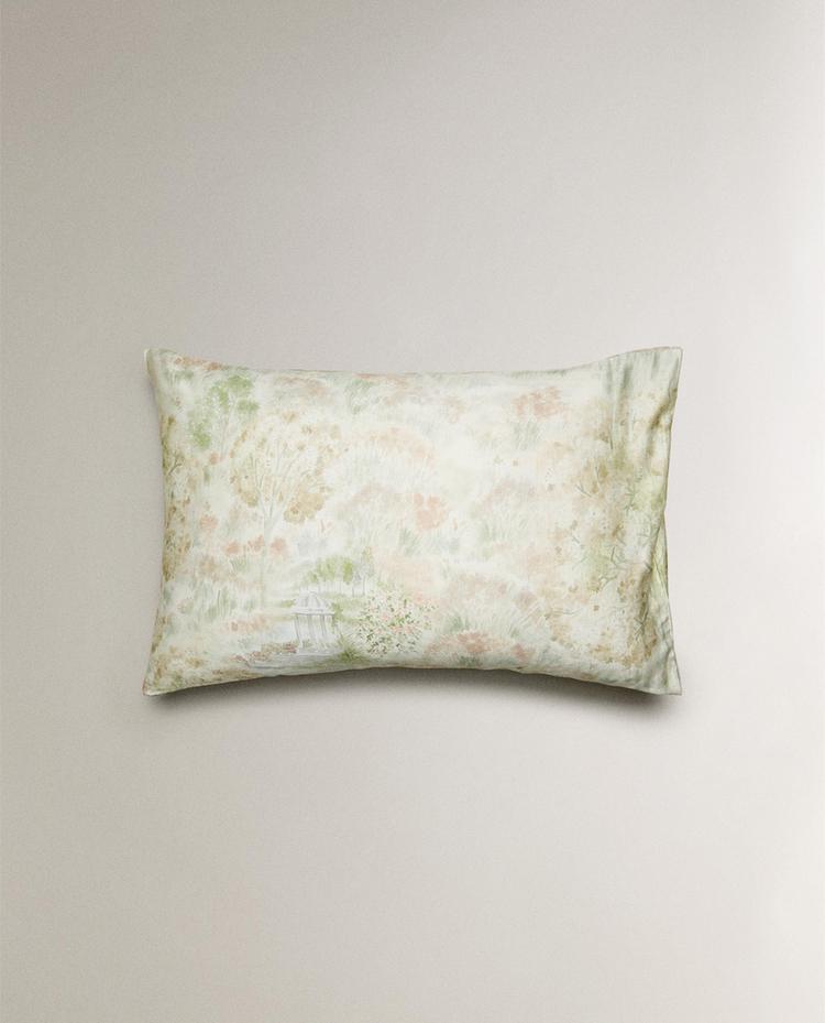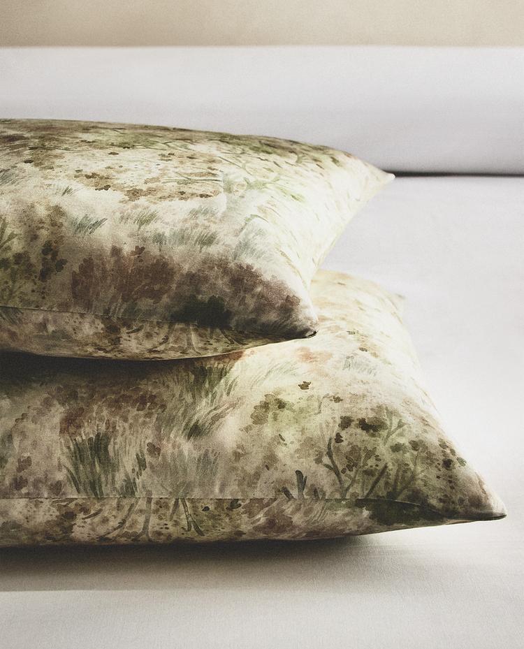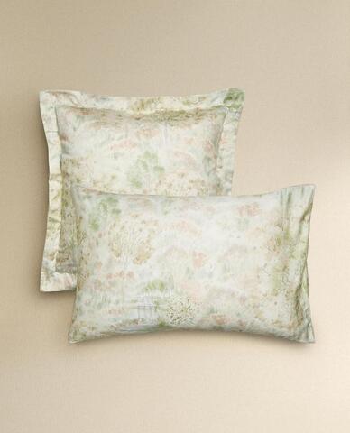ZARA HOME НАВОЛОЧКА С ЦВЕТОЧНЫМ ПРИНТОМ, ЗЕЛЕНЫЙ