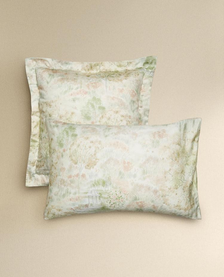 Наволочка из сатина плотностью 200 нитей с принтом в виде сада и акварели.
