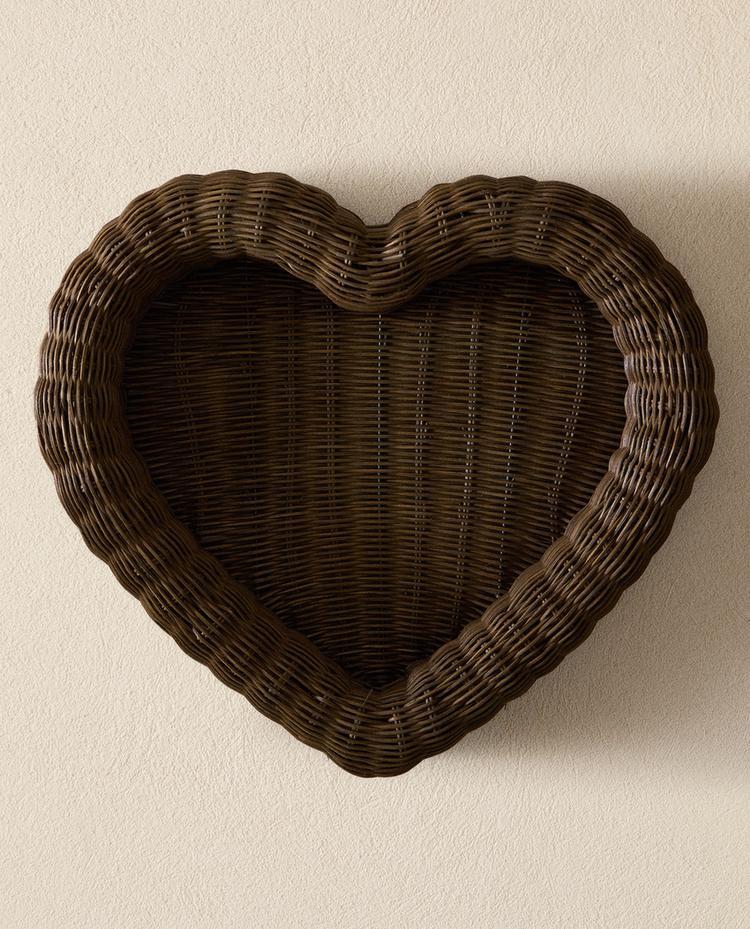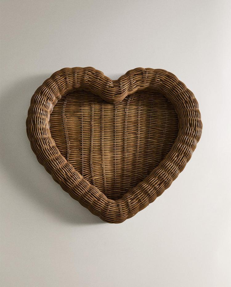 ZARA HOME НОВОГОДНИЙ ПОДНОС ИЗ РОТАНГА В ФОРМЕ СЕРДЕЧКА, КОРИЧНЕВЫЙ