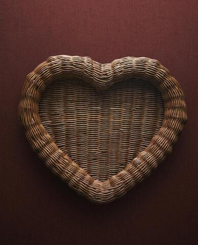 Новогодний поднос из ротанга в форме сердечка.
