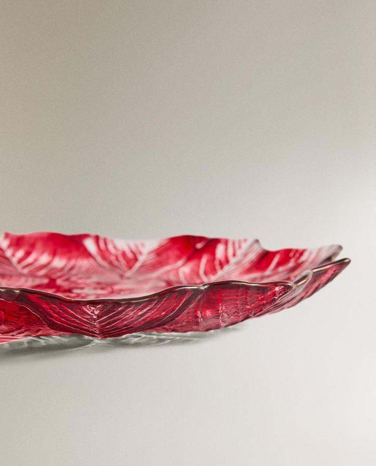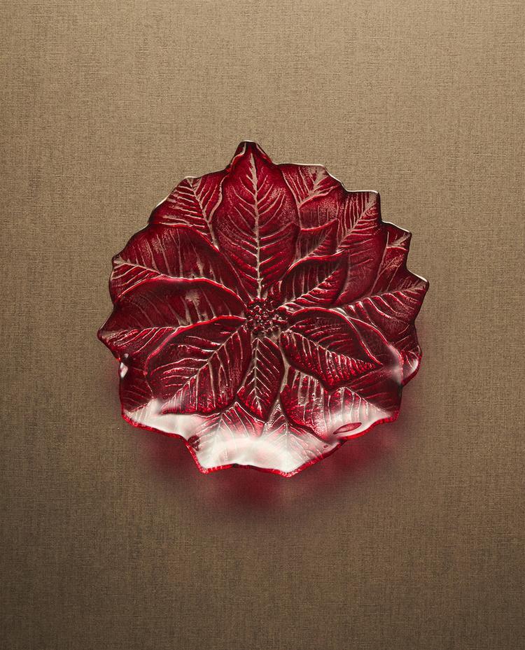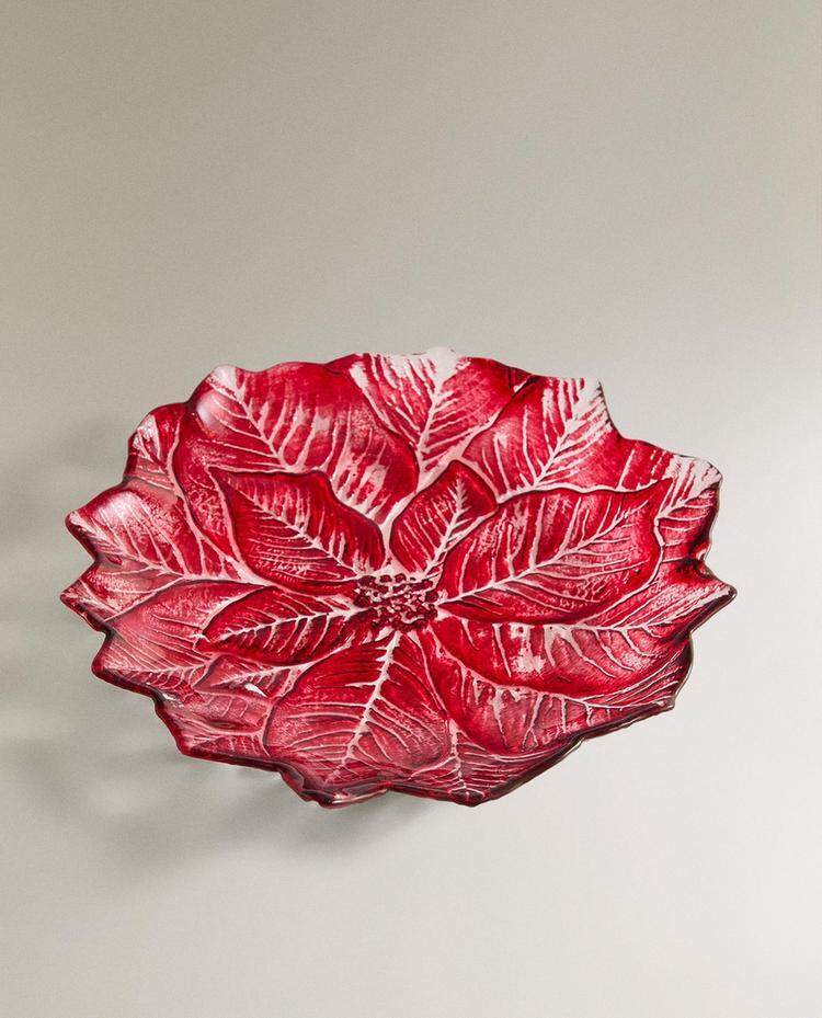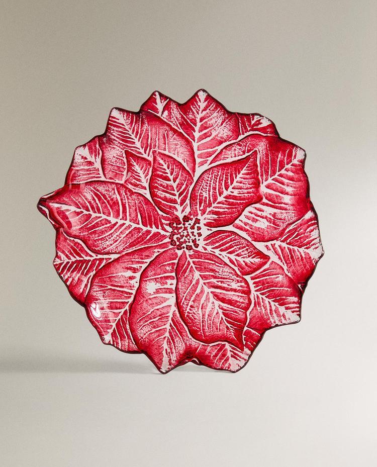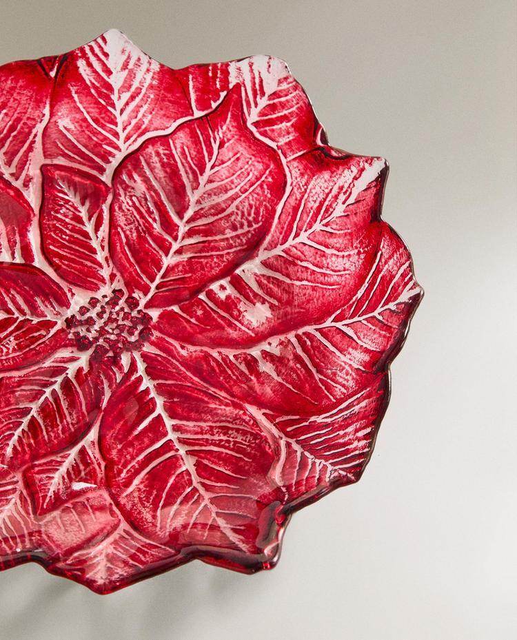 ZARA HOME НОВОГОДНЯЯ ДЕСЕРТНАЯ ТАРЕЛКА ИЗ СТЕКЛА В ФОРМЕ ЦВЕТКА, КРАСНЫЙ