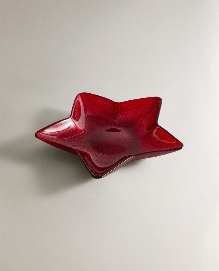 ZARA HOME НОВОГОДНЯЯ СТЕКЛЯННАЯ МИСКА «ЗВЕЗДА», КРАСНЫЙ