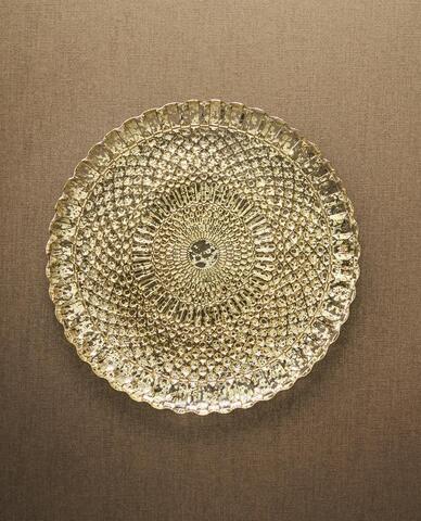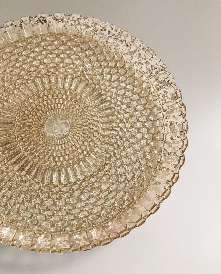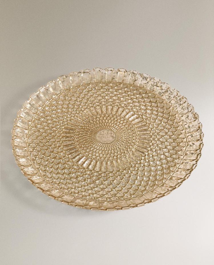 ZARA HOME НОВОГОДНЯЯ СТЕКЛЯННАЯ ТАРЕЛКА ИЗ РЕЛЬЕФНОГО СТЕКЛА, СЕРЕБРЯНЫЙ