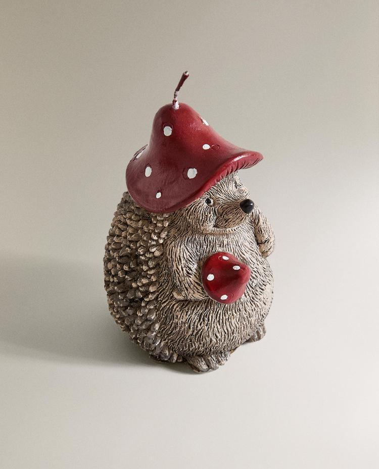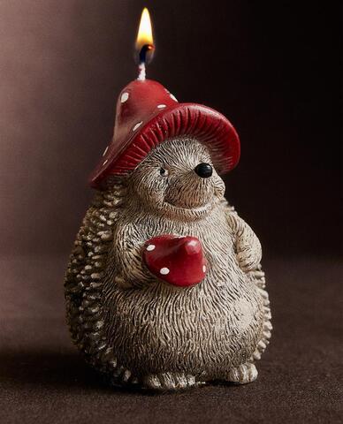 Декоративная свеча «Ежик в шапочке в форме гриба».