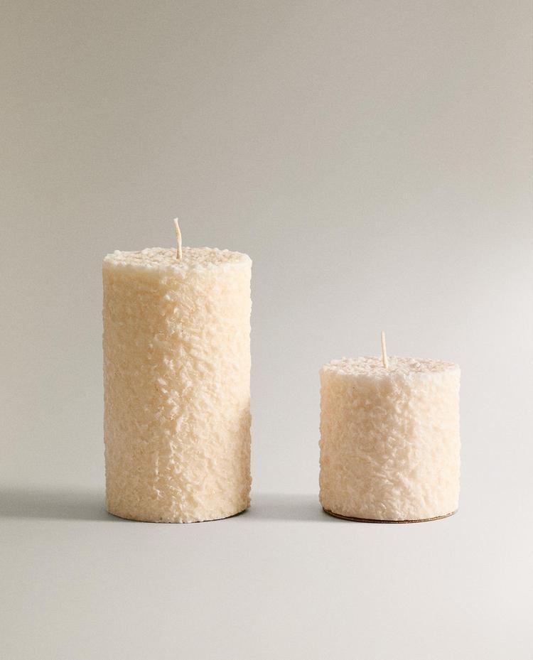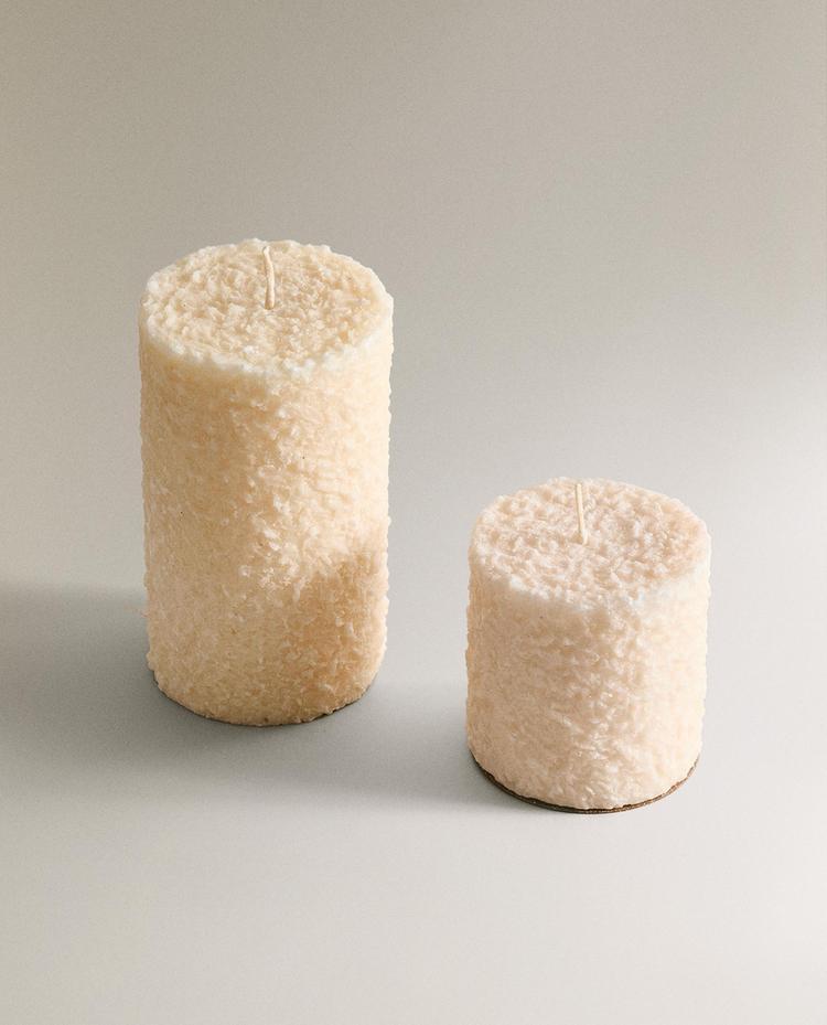 ZARA HOME НОВОГОДНЯЯ СВЕЧА ЦИЛИНДРИЧЕСКОЙ ФОРМЫ, БЕЛЫЙ