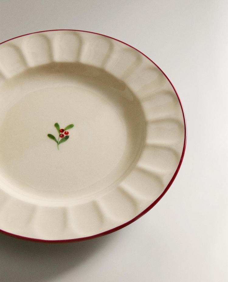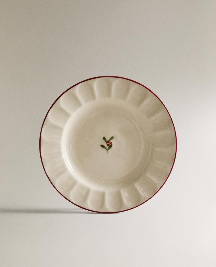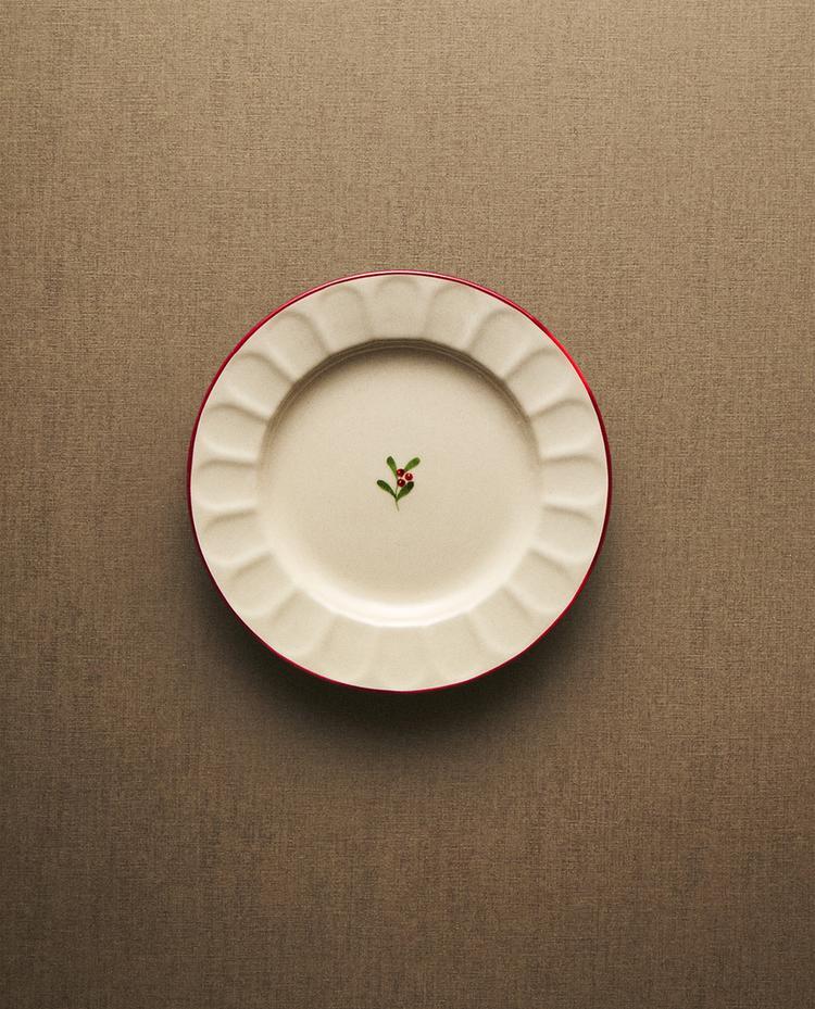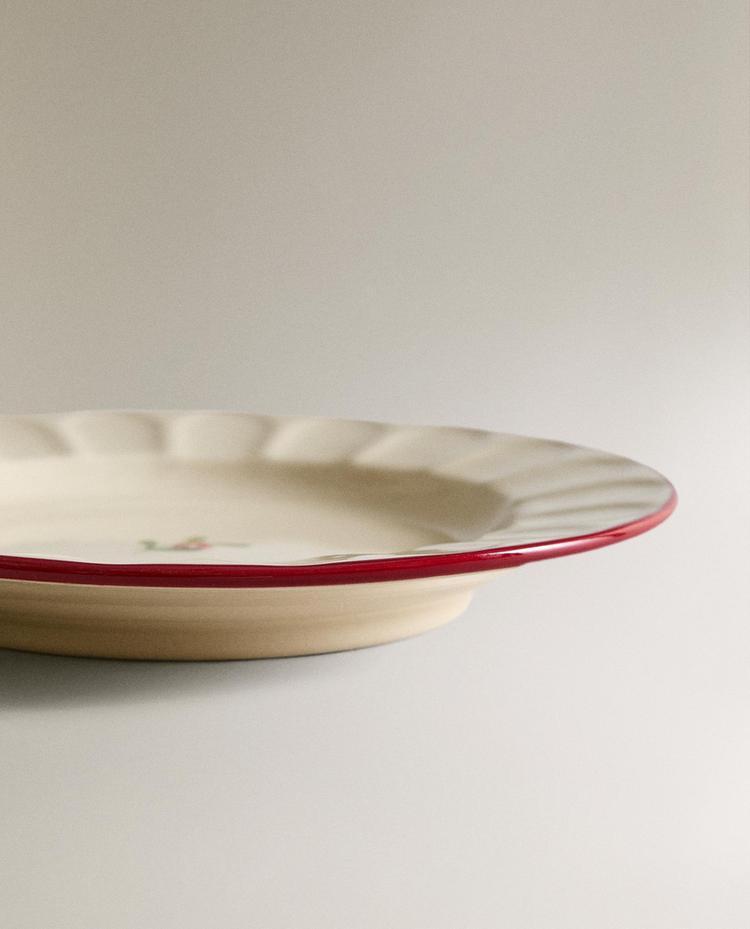 ZARA HOME НОВОГОДНЯЯ ТАРЕЛКА ДЛЯ ХЛЕБА ИЗ КЕРАМИКИ С ВОЛНИСТЫМ УЗОРОМ, БЕЛЫЙ/КРАСНЫЙ