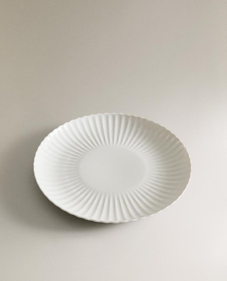 ZARA HOME ОБЕДЕННАЯ ТАРЕЛКА С РЕЛЬЕФНЫМ УЗОРОМ, БЕЛЫЙ